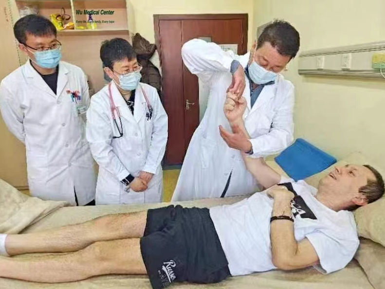 The patient's admission diagnosis was "primary lateral sclerosis, a type of motor neuron disease", and during his stay in the hospital, he received treatment with nerve stem cell repair for motor nerve injury, mesenchymal stem cell supporing nutrition, endocrine, immune, and auxiliary application of drugs such as edaravone, riluzole, and nerve growth factors with CAST therapy, comprehensive rehabilitation treatment was also provided to him.