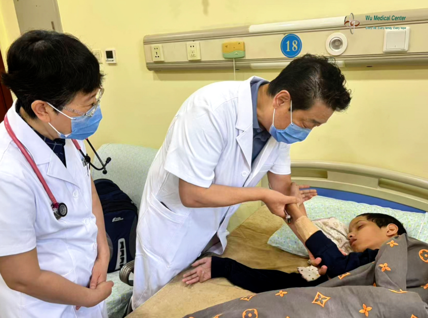 The patient was admitted primarily due to "visual impairment, delayed motor and cognitive development, and recurrent seizures for 10 years." Currently, he presented with visual impairment, recurrent seizures (mainly generalized), speech difficulties, motor and cognitive disabilities. He had poor neck support and weak back muscles. His limb muscle strength was deteriorating, and he had joint deformities. He could stand and walk with assistance but was very prone to falling. He was currently taking Topiramate, Sodium Valproate, Levetiracetam, Risperidone, Nitrazepam, and Melatonin. He experienced seizures approximately 2-5 times a day, each lasting about 10-30 seconds. His sleep quality was poor; he was restless at night and slept excessively during the day, often shouting when awake.
