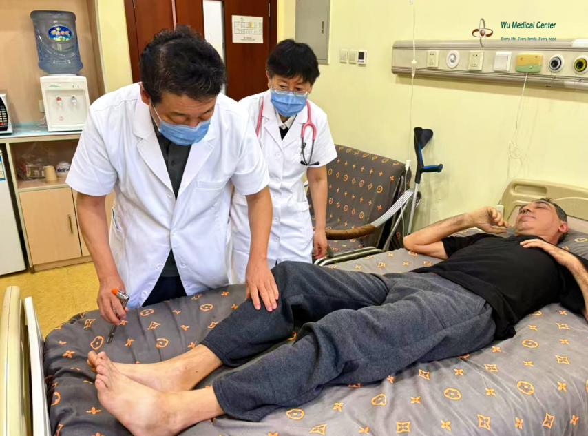 The patient's motor function is significantly improved, with an overall enhancement of about 30%, and the progression of the disease is halted. His respiratory function is improved, his speaking volume is increased, and episodes of interruption is decreased. Limb strength is improved, with proximal muscle strength in both upper limbs reaching approximately grade 4, allowing him to counter considerable resistance. His left hand grip strength is at grade 3, enabling him to grasp another person's fingers, and at a specific angle, he can pinch a reflex hammer between two fingers; his right hand grip strength reaches grade 4+. His lower limb strength is improved to grade 4; in a supine position, he can maintain a right angle in hip flexion and knee flexion in his left lower limb for over 10 seconds, and for his right lower limb, it is 13 seconds. The stiffness in his hip joints is significantly decreased, and the spasms and pain are disappeared. His range of motion is improved, as he can open his legs to approximately a 60-degree angle without discomfort. The speed and stability of the knee-heel-tapping test are increased compared to before. He requires less support while walking, his walking speed is increased, turning becomes noticeably more flexible, and his stability is improved. His energy levels, physical fitness, and exercise endurance also are increased.