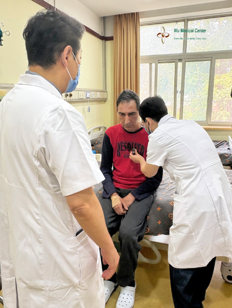 The patient was admitted due to "progressive dysarthria, swallowing difficulties, and limb weakness for 1.5 years, worsening in the past 2 months," diagnosed with "Amyotrophic Lateral Sclerosis." The patient experienced significant speech weakness and unclear articulation, with prolonged sentences being broken and incoherent. He had weakness in all 4 limbs, particularly in both hands, with the left hand being more affected, rendering him unable to write. His lower limbs were stiff, spastic, and have reduced muscle strength. He stood up slowly from a seated position, could walk short distances slowly using a cane in his right hand, had difficulty turning, could not stand on one leg, and exhibited muscle atrophy in his limbs. His respiratory function was slightly diminished, and he had not yet used a ventilator. Since the onset of the disease, he had lost approximately 15 kg in weight. He previously received vitamin, protein, and testosterone treatment in his home country, which was ineffective, and his condition has continued to worsen.